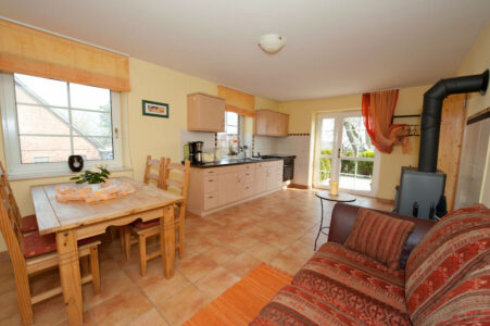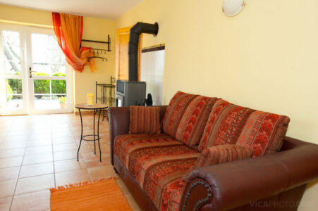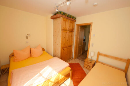 This 55 sq m, three room apartment is located on the ground floor. If features two bedrooms, one having a twin bed and room for a child’s bed, the second one has a twin and one additional single bed. The apartment is equipped with a fireplace, dish washer and floor heating.